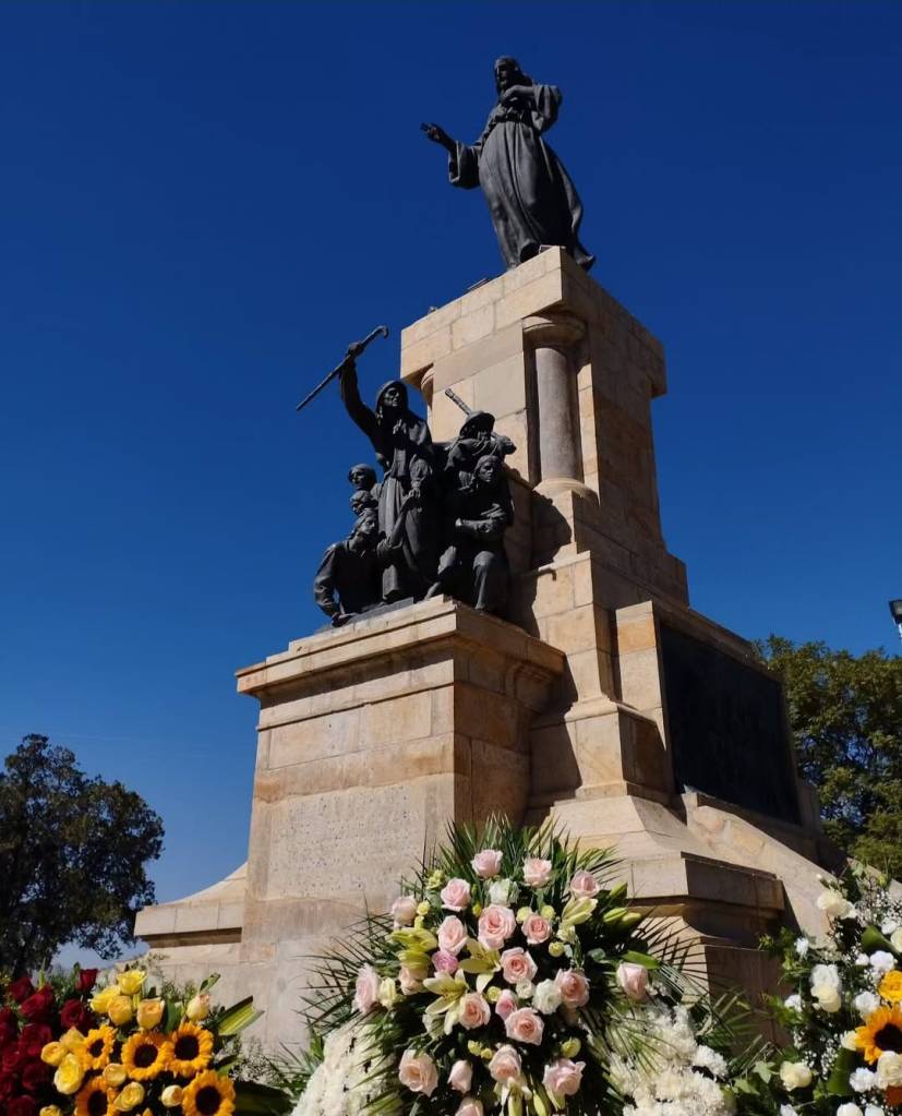 At the top of the monument stands a statue of the Sacred Heart of Jesus, placed as the spiritual protector of the Heroines.